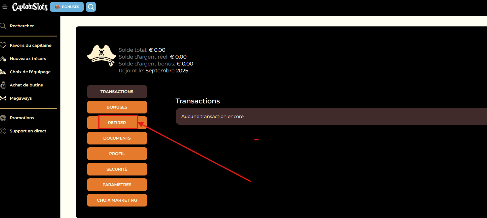 Retraits Captain Slots Casino